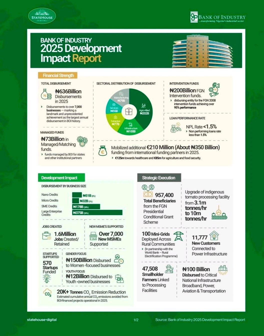 O’tega Ogra, FCIM, has commended the Bank of Industry (BOI) for deploying N636 billion into Nigeria’s real economy in 2025, describing the intervention as a strategic push for disciplined development finance and sustainable industrial growth.
