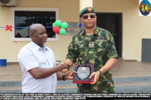 The project was facilitated by the Commander of the Training and Doctrine Command (TRADOC), Nigerian Army, Major General KO Aligbe, who also represented the COAS at the commissioning ceremony. The newly commissioned health care center is equipped with a fully functional consultation unit, maternity and laboratory sections, nurses’ station, medical store, modern sanitation facilities, a solar-powered borehole for clean water supply, perimeter fencing, and solar-powered lighting systems to ensure round-the-clock functionality and security.
