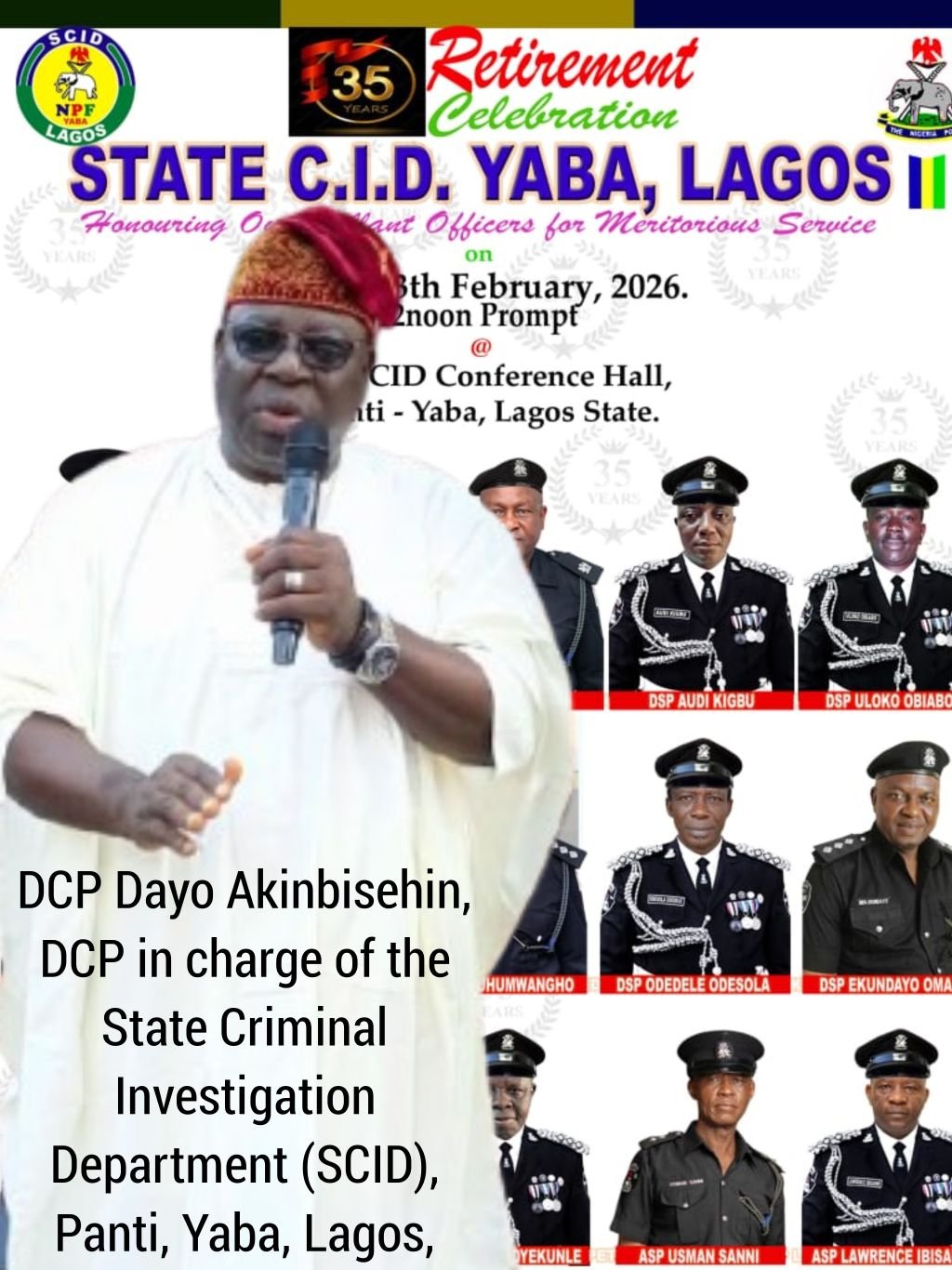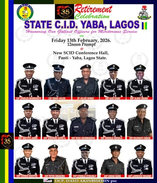 The event, themed “Retirement Celebration – Honouring Our Gallant Officers for Meritorious Service,” held at the New SCID Conference Hall, Panti, Yaba, under the Lagos State Police Command, drew top security officials, government representatives, captains of industry, families, and well-wishers.