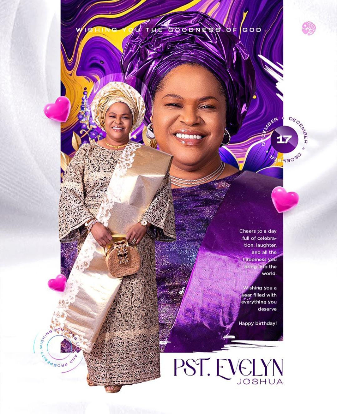 Pastor Evelyn Joshua, leader of The Synagogue, Church of All Nations (SCOAN), today celebrates her birthday, drawing warm tributes from church members, Christian leaders, and admirers across Nigeria and beyond.