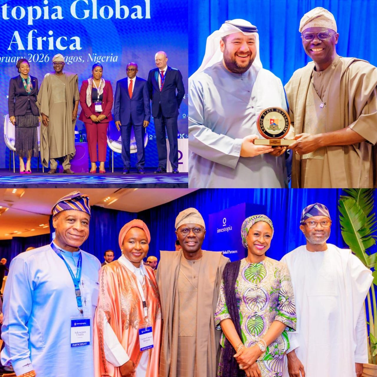 Governor of Lagos State, Mr. Babajide Sanwo-Olu (middle); Chairman, First Bank of Nigeria Holdings, Mr. Femi Otedola (right); Prince Segun Oniru (left) and other participants during the Nigeria-UAE investment forum tagged “Investopia Global Africa”, organised by the Federal Ministry of Industry, Trade and Investment at the Eko Hotels and Suites, Victoria Island, Lagos, on Monday, February 2, 2026…