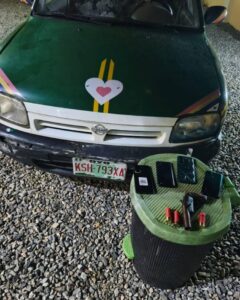 Ummah, in her statement also informed that exhibits recovered from the suspects during the operation include: One (1) Nissan Micra with Reg. No. KSH 793 XA, One (1) double-barrel short gun, One (1) single-barrel short gun, Two (2) locally made single-barrel pistols, Twenty-Nine (29) live cartridges, Nineteen (19) mobile phones, sum of ₦72,000 cash, One (1) wristwatch, Three (3) necklaces, and Three (3) ATM cards.”